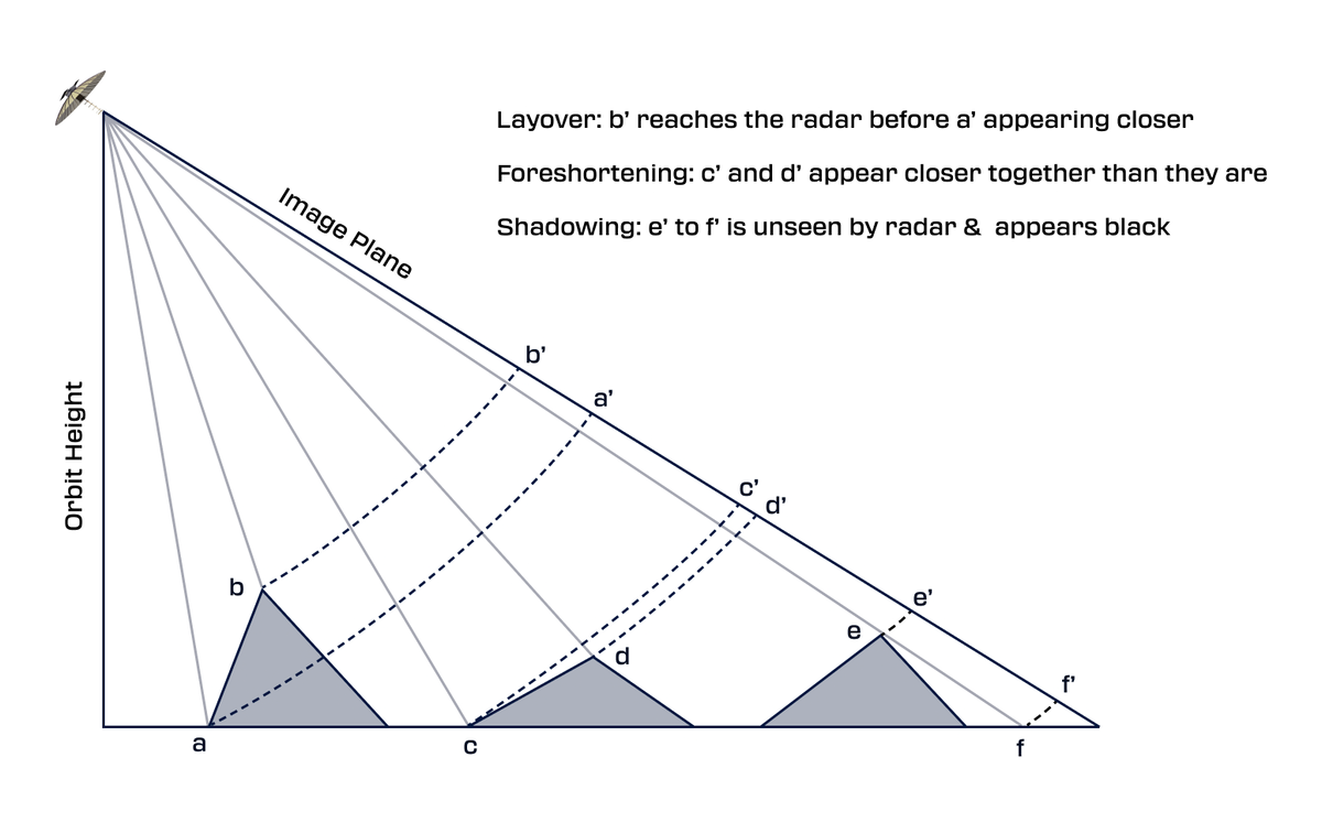 This can mean that interpreting these images isn't straightforward and complex distortions such as layover and shadowing can require specialized knowledge to accurately understand and analyze the data.
